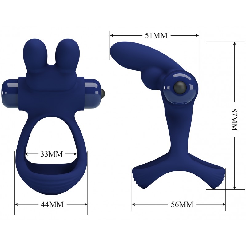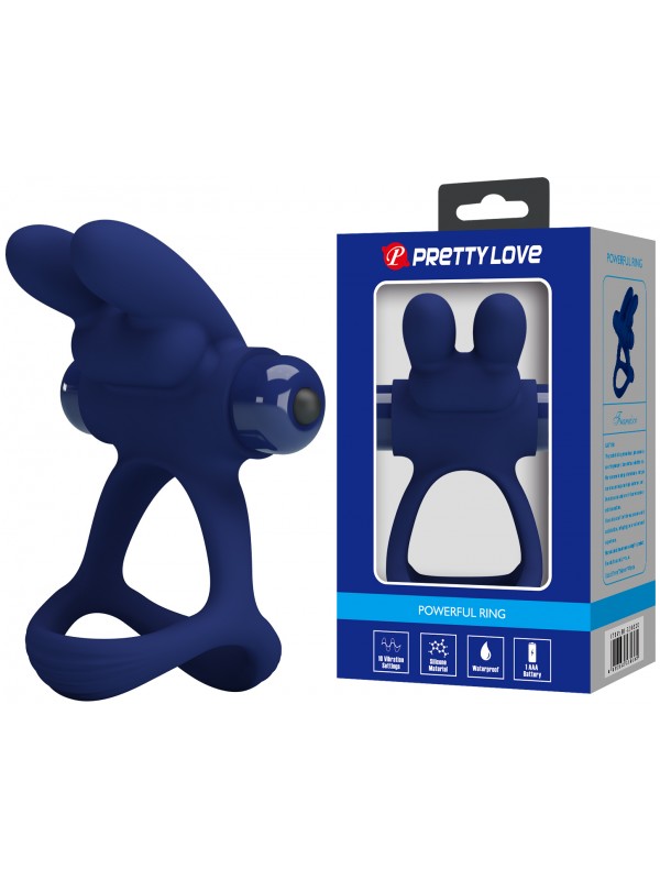 Эрекционное виброкольцо Pretty Love Powerful Ring подарит Вам крепкую эрекцию, продлит половой акт и доставит партнерше дополнительное удовольствие благодаря клиторальной стимуляции!Игрушка представляет собой эрекционное силиконовое кольцо с клиторальным стимулятором в виде зайчика с петлей на мошонку. Кольцо надежно фиксируется на пенисе и яичках, помогая поддерживать более твердую эрекцию и усиливая оргазмы.Зайчик, выполненный из нежнейшего силикона, будет ласкать клитор партнерше своим тельцем и ушками, еще больше возбуждая ее и доставляя удовольствие. Кольцо оснащено 10 режимами вибрации, которые удобно переключаются с помощью кнопочки на вибропуле. Мягкое и шелковистое на ощупь виброкольцо выполнено из высококачественного силикона - гиполаллергенного материала, легкого в уходе.Этот аксессуар станет одной из Ваших любимых игрушек на ночь!Для более комфортного использования и сохранения качества материала рекомендуем использовать смазки только на водной основе.Размеры: общая длина 8,7 см, ширина 4,4 см, высота 5,1 см, диаметр в не растянутом состоянии 3,3 см
