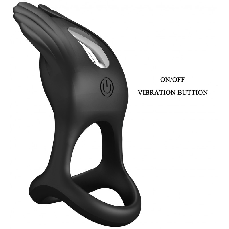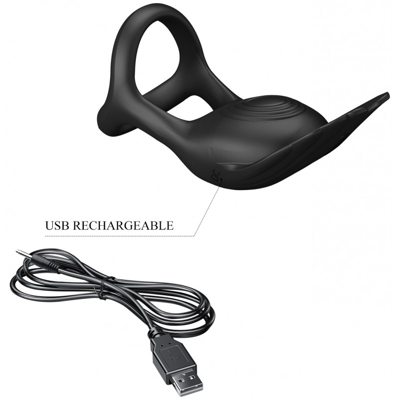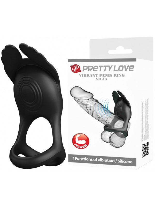 Перезаряжаемое эрекционное виброкольцо Pretty Love Vibrant Penis Ring Silas с петлей на мошонку черное код BI-210318