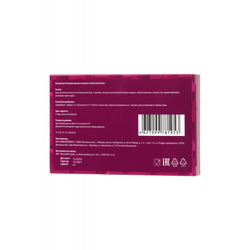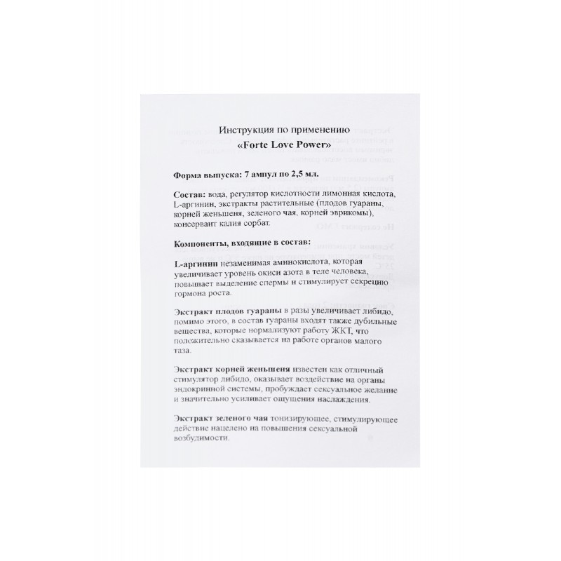| Состав, ингредиенты | вода, регулятор кислотности лимонная кислота, L-аргинин, экстракты растительные (плодов гуараны, корней женьшеня, зеленого чая, корней эврикомы), консервант калия сорбат. |