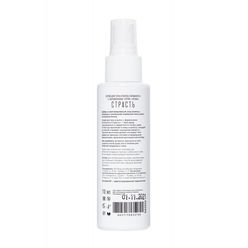 | Состав, ингредиенты | дистиллированная вода, циклометикон, оливковое масло, глицерин, косметическая отдушка, фиксатор аромата, шаромикс, полисорбат, феромоны, ТВИН-80. |